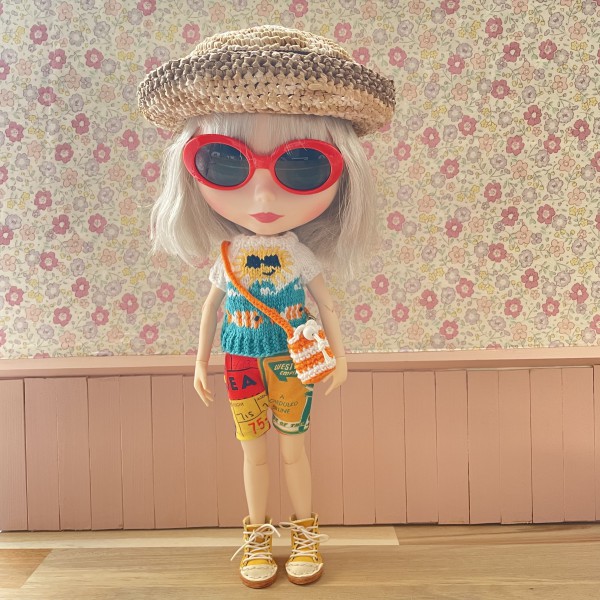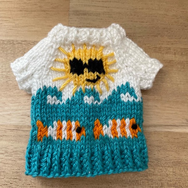 夏らしい柄をたくさん編み込んでみました。
