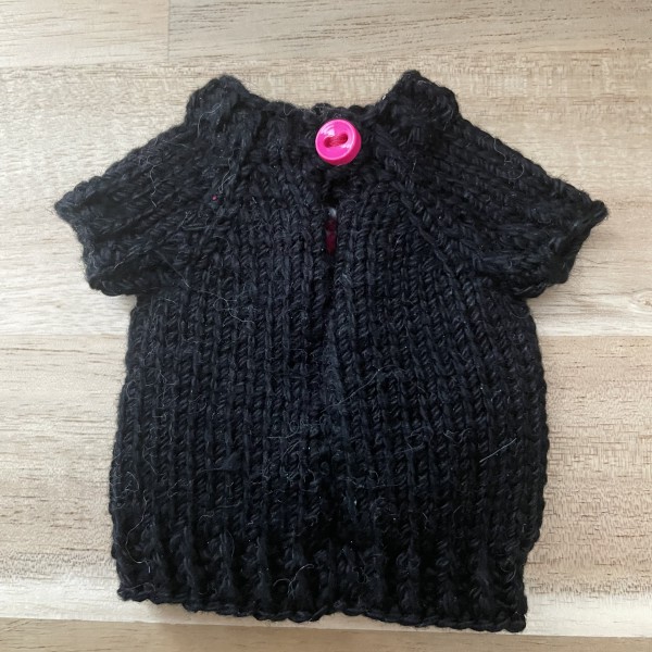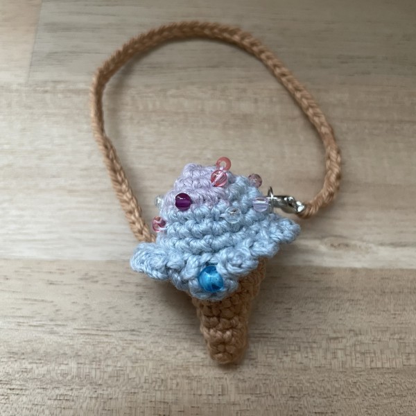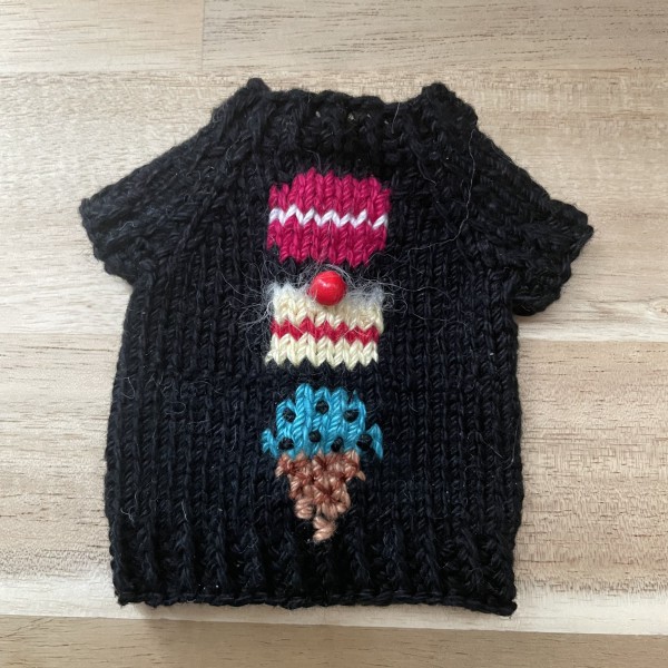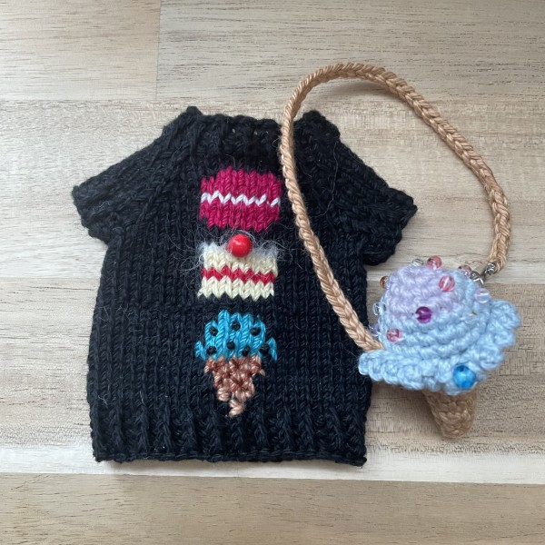 スイーツのモチーフを編み込みました。アイスのポシェットを合わせてみました。
