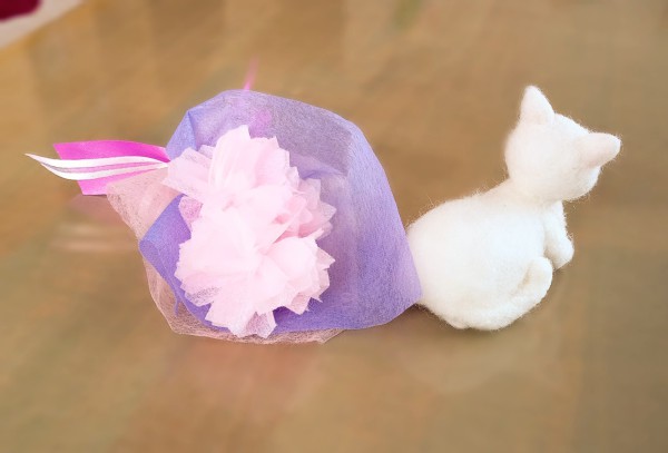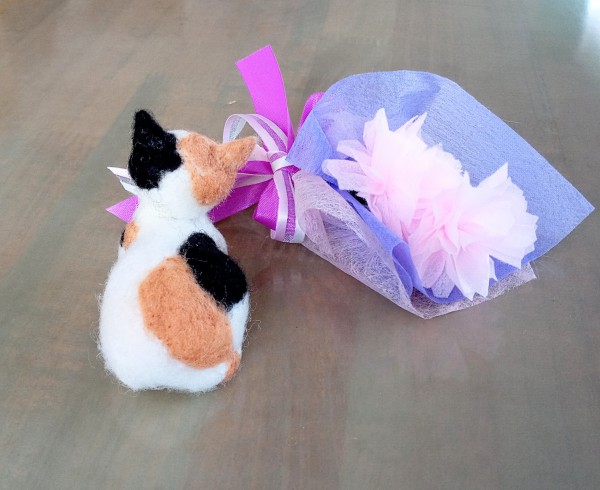 羊毛フェルトで今、よく耳にする「おててないない」香箱座りをする猫を作りました。
