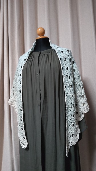 | ワンダーコットンでバイラス編みのショールに挑戦。 春夏用のショールを作ろうと思い、ワンダーコットンを手に色々検索して、連休を利用して、今まで尻込みしていたバイラス編みに挑戦することにしました。 長編みの数を間違ったり、目の緩みが気になったりで、編み直したりしてたので、思ったより時間かかってしまいました。 一玉使い切ろうと思って、最後の縁編みに試行錯誤して1日使ってしまいました。  |