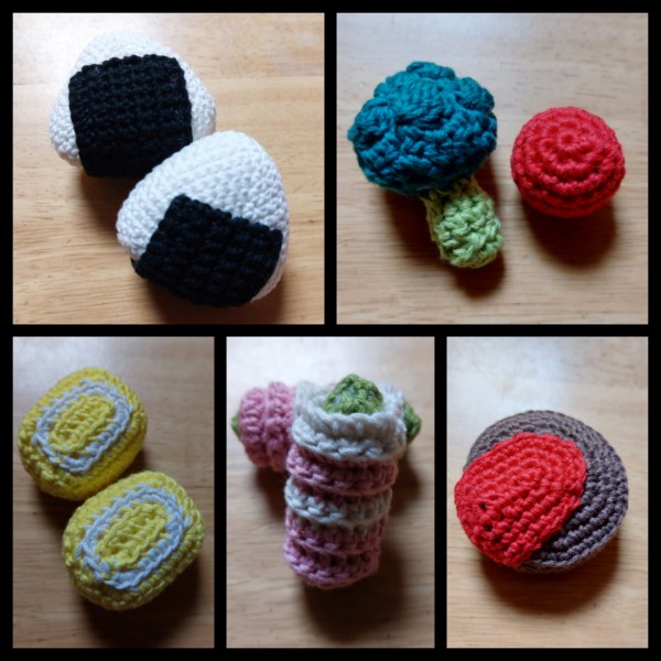 遠足のお弁当をなるべくリアルに再現したくて編みました。なるべくオリジナルで編めるように考えてみました。