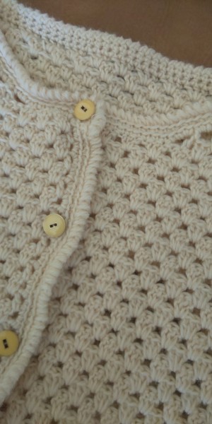 ピンクベージュの色で、ゆったりめでレトロなデザインです。