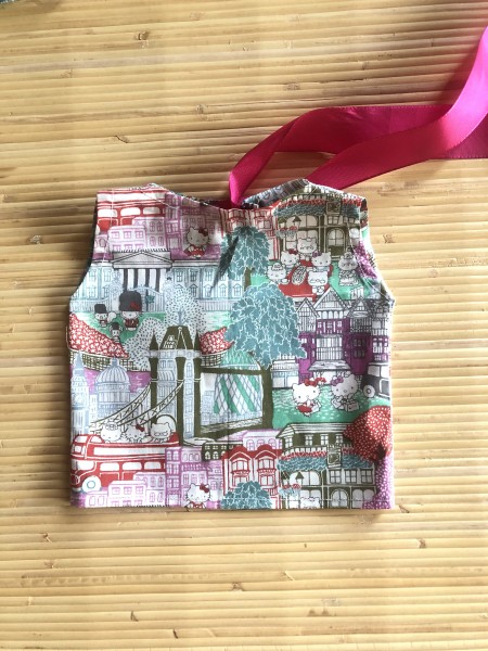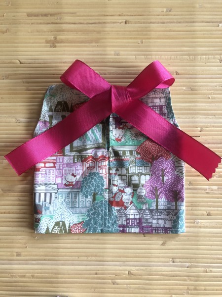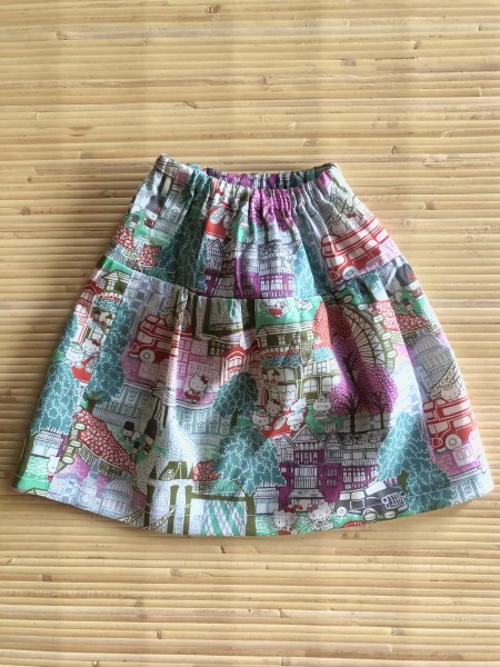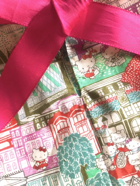 キティちゃん柄のリバティの残り生地で、ブラウスとスカートを作ります。