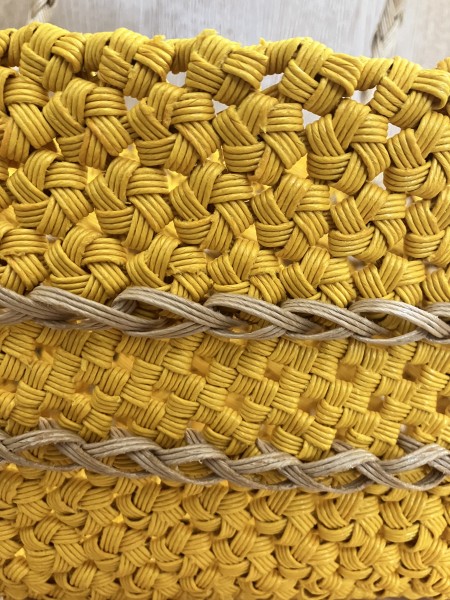 「紙バンドで作る 四つだたみ&花結びのかごとバッグ」を参考に、段数などを変えています