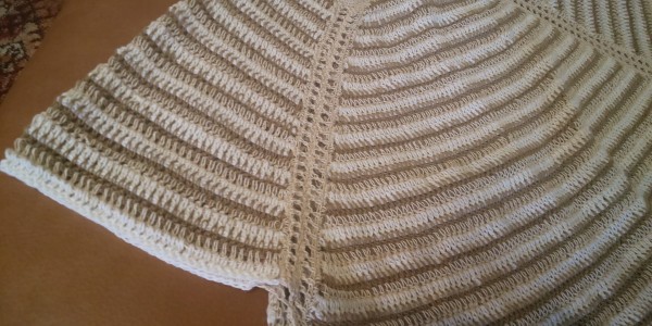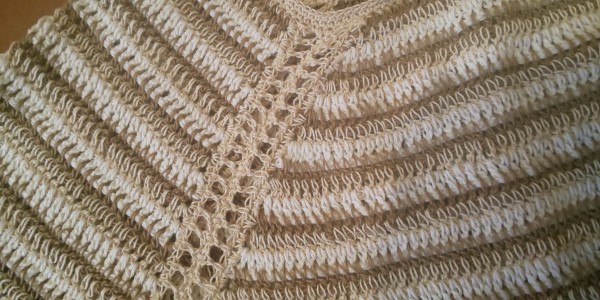 三色の糸を使ったボーダー柄のラグラン袖のサマーセーターです。