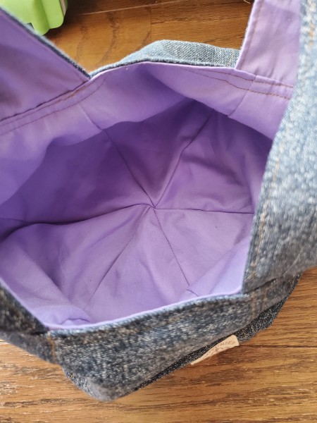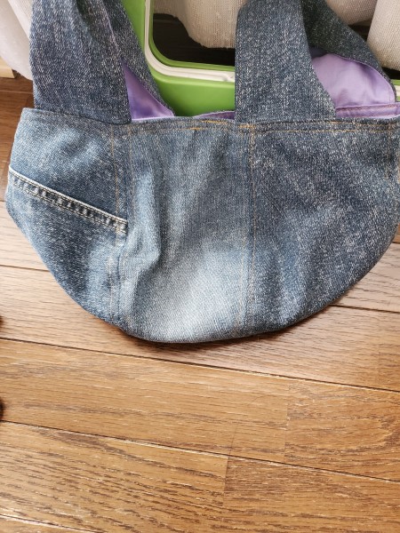 デニムリメイクです!YouTubeを見て作ってみました。コロンとした小さめのカバンが出来ました♪