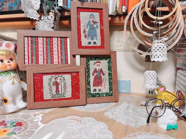 素敵ですねー! これなら、家じゅうのちょっとしたところに飾って、 クリスマスの雰囲気を楽しめますね。 額に入れたときに色遣いも良いですね~~