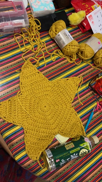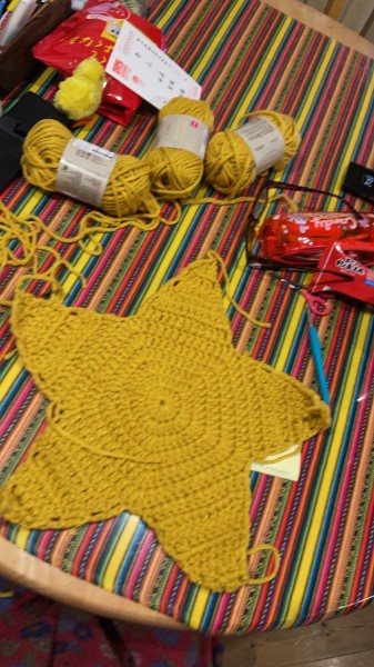 太めの毛糸では星形のクッションを作りました。