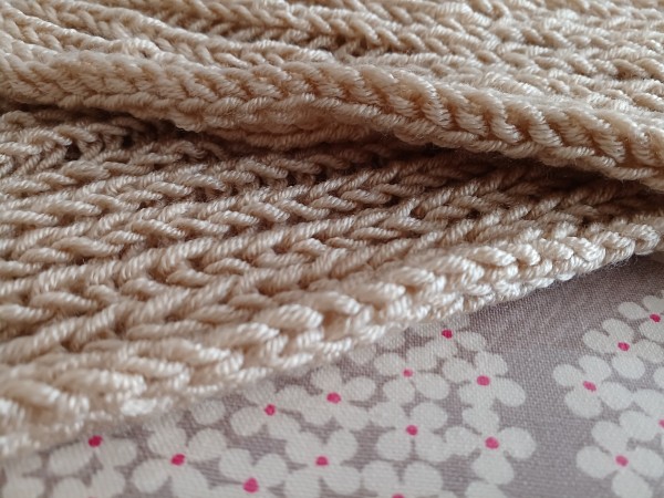 イギリス編みの両面引き上げで編んだので、裏表気にしなくてもいいので便利です。