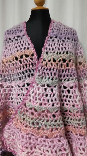 | すてきにハンドメイド1月号の、円形ストールを、他の方の作品を見て作りたくなり、ネットで本を購入しました。 家にあった閉店セールのモヘアと引き揃えでミストヤーンと、マフラーを編んだ残りのウィスターミックスロールガーデンを使用します。 足りなくなったときのために、ダイソーのファジーを用意しました。 腰までくるたっぷりの長さと、モヘアで暖かいショールが出来ました。 |
