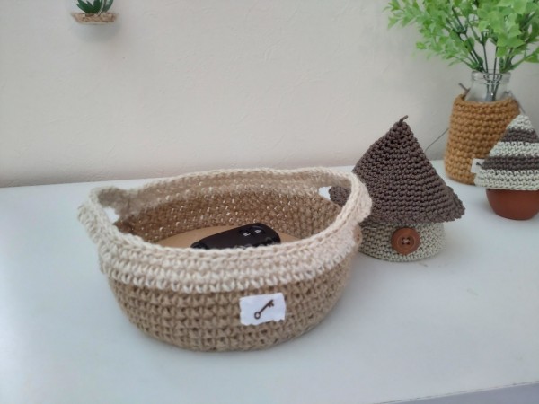| 使用糸 | ダイソー麻紐(120m巻き)、ジュートヤーン(ホワイト) |