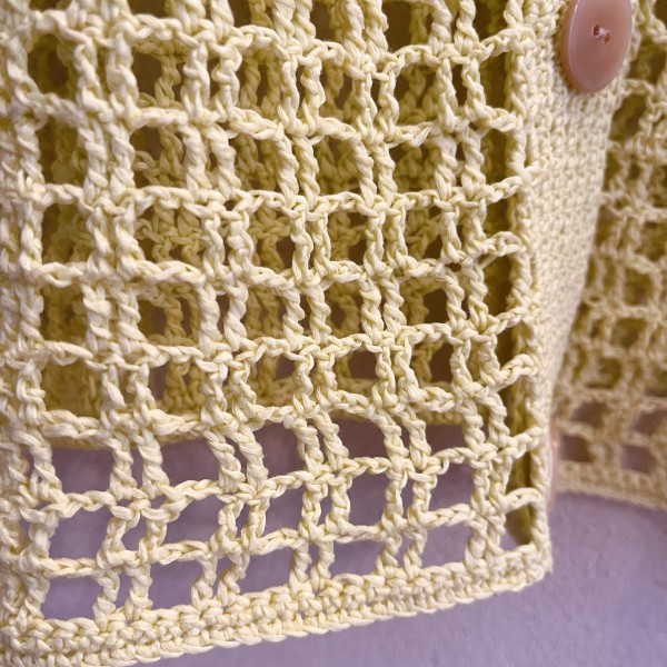 キーティキーティキーティのモトコさんのYouTubeを見ながら作りました。方眼編みの襟付きカーディガンです。長々編みがベースで難しい所もなくオシャレなものが編めました。夏になったらTシャツに羽織って着たいと思います。