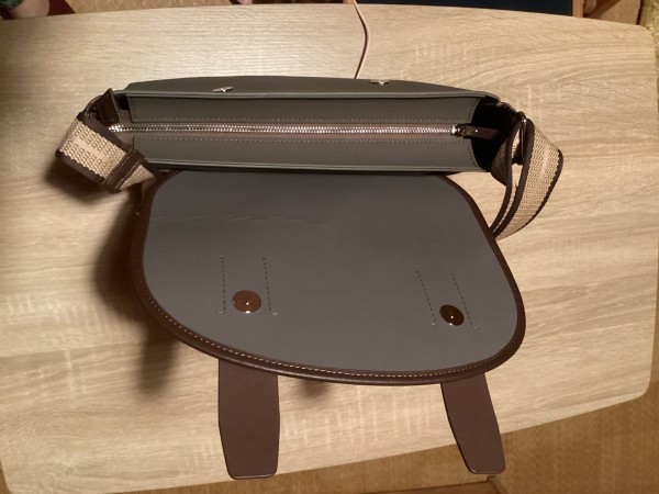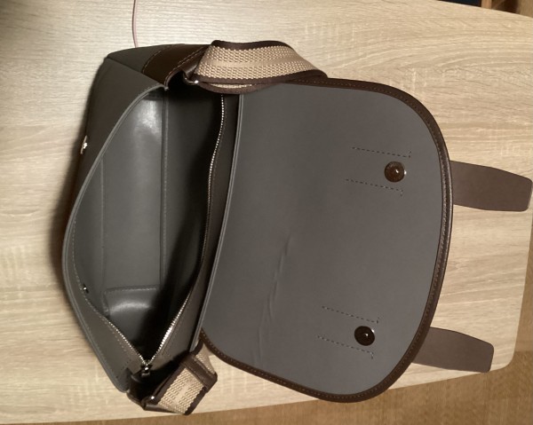 | 息子用のバッグ 単純な作りなのだけど、最後に裏返して縫う時ファスナーが持ち手の外に来てしまい… レザークラフトは解くのが至難の技なので、さんざん考えた挙句片方の持ち手の根本を解いて解決 でも仕上がりがそこだけエラく不恰好になってしまいました 誕生日プレゼントの予定だったのに大失敗です涙 |