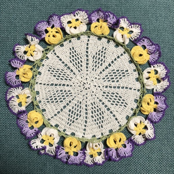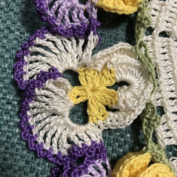| 使用糸 | マンセルグランデ(白と藤色と緑)、エミーグランデ(濃い紫)、ダイソーのリサイクルレース糸(黄色) |