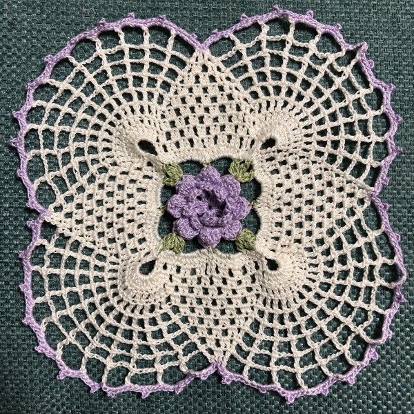 | あみーずさんのサイトから、「アンティークスタイルのドイリー」の編み図で製作いたしました。 >> https://amiizu.com/antique/ なんか中央付近にシワ寄ってたり次の段に移るときの編む場所間違えまくったりしたけど、かわいくできて満足です。紫もいいですね。 |