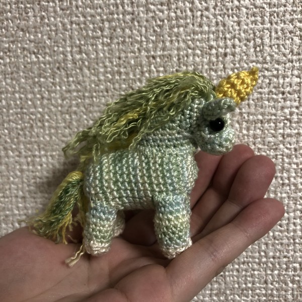 | 使用糸 | エミーグランデミックスM2(全身)、マンセルグランデ804(蹄)、ダイソーのリサイクルレース糸シトロン(角) |