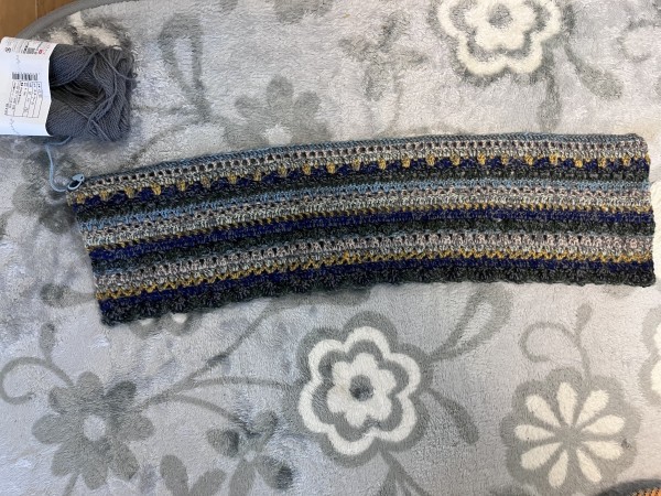 グレーの糸が足りなくなったりして、編み直しをはさみつつ③の編み図まで終わりました