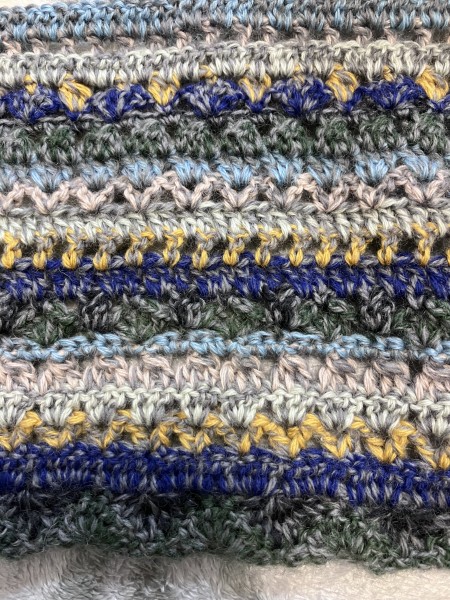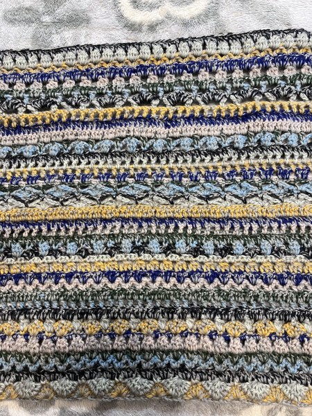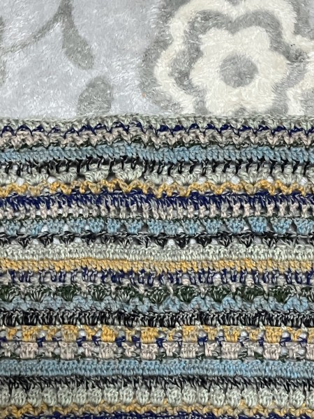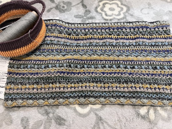 一段ずつ色を変えると糸始末が大変ですが、変えなくても素敵な編み地になりますよ