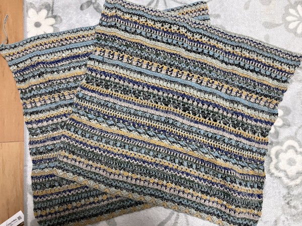 繰り返しをしたりして丈を調整して前後見頃完成しました