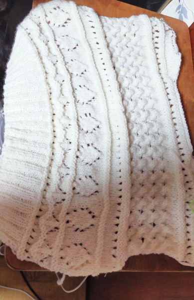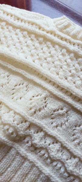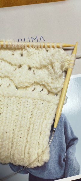 初のセーターに挑戦したオープンワークプルオーバー、もうちょっとで完成です。