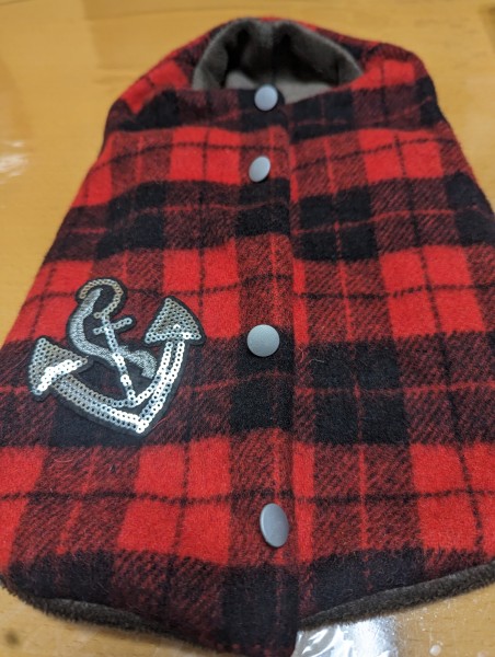 着なくなった私の茶色のスカートとハギレでワンコの冬服を作りました(^^)。YouTubeのひなひなさんの作り方を参考にしています。