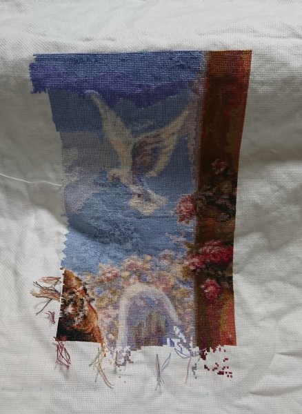 ポーチにするからと預かった布にチクチクしました。 デザインが決まらず、縫ってはほどき、もう何が正解かよく分からないのですが、とにかく仕上げた感じです。