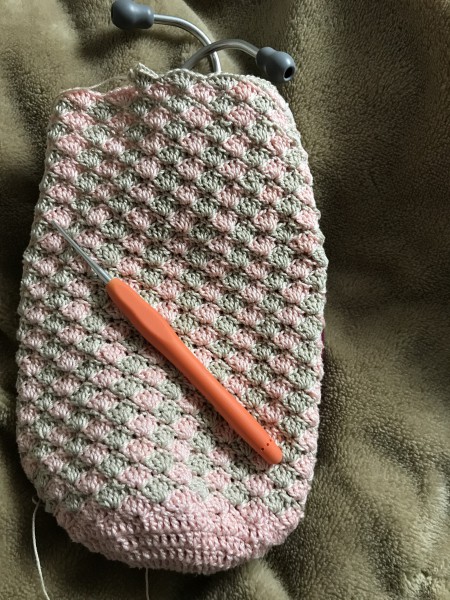 かぎ針編みのモチーフの練習をしていて、娘よりバッグにして欲しいとのリクエストがあり、ひたすらモチーフを編み続けました。着物に合いそうです。