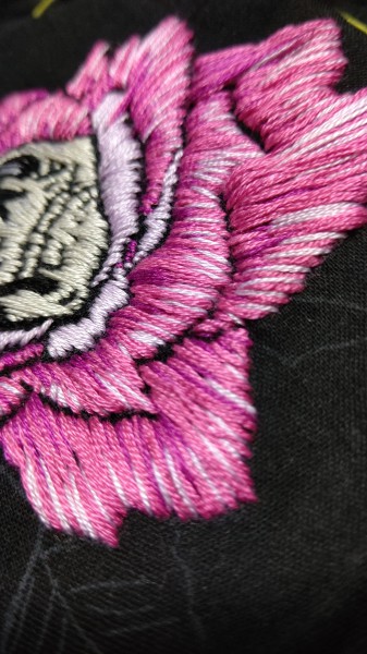 立体刺繍でがま口ポーチを作りました。 表面と裏面、内側にも刺繍を入れています。 刺繍時間が続くように時間のかかる図案を考えています。