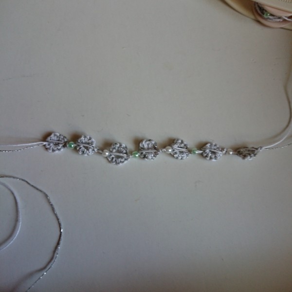 タティングレースネックレス ダイソー刺繍糸ホワイトラメ
