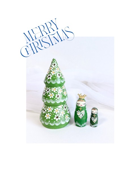 クリスマスツリーの中からマトリョーシカが2人でてきます