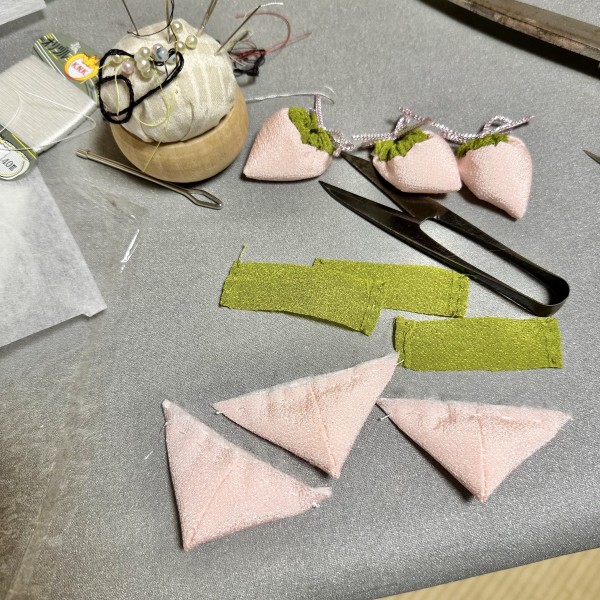 吊るしびなを作りかけました。今は桃のパーツを作っています。
