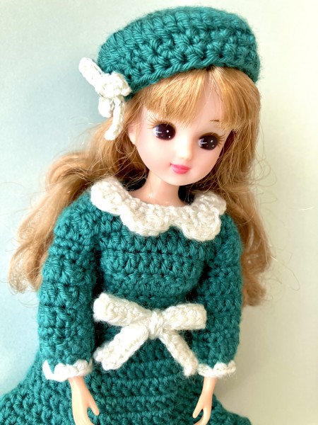 リカちゃんのワンピース、2着目です^ ^ アクリルの毛糸で編みました。 リカちゃんはスタイルがいいから、何を着せても可愛いな^ ^