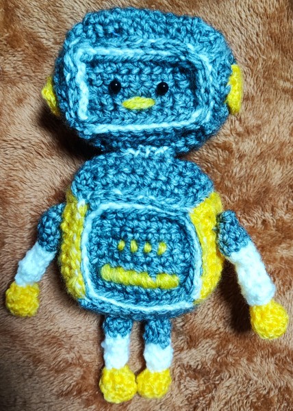 ロボット。 身長約25cm。 在庫糸の整理で。 思っていたより大きくて存在感の有るロボットくんが誕生しました。 書籍 いつでもいっしょちびぐるみとこものを参考にしています。