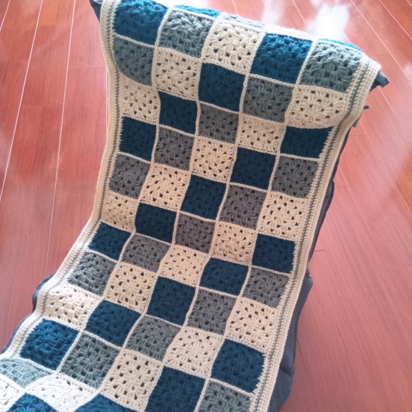 座椅子カバー第2弾を編みました。モチーフも縁編みもシンプルにしました。 前回と同じでDAISOのメランジトリコの糸を使っています。 思っていたよりモチーフが小さかったので、縁編み多めです。 最後に前回の座椅子カバーと並べてみましたよ。うん、可愛い(自己満足)