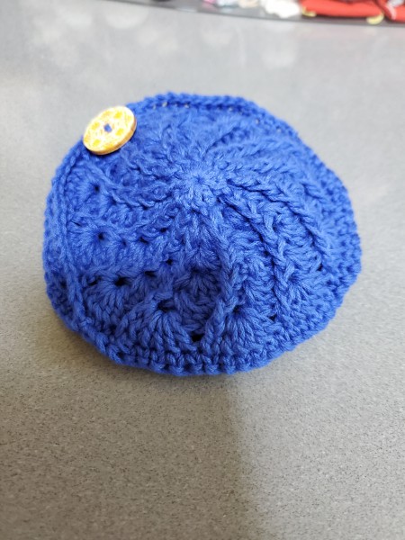 ホビーラホビーレの糸でバッグを編む途中、放置していたモチーフをほどいて帽子に編み直しました。
