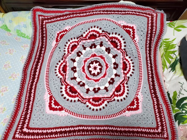 大物ブランケットに挑戦。 海外のキット使用。説明書も英語。これは良い経験。 アクリル100なのにふわっふわで気持ちのよい毛糸です。