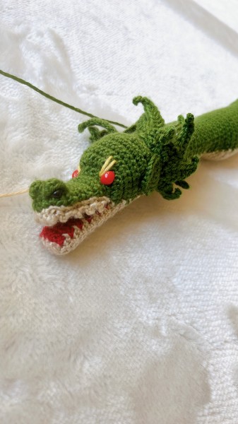 年賀状用の龍です。躍動感のある何事にも立ち向かえそうな龍を目指して編みました。各パーツそれぞれ何度も試行錯誤しながら編み直してほぼ満足な仕上がりです。