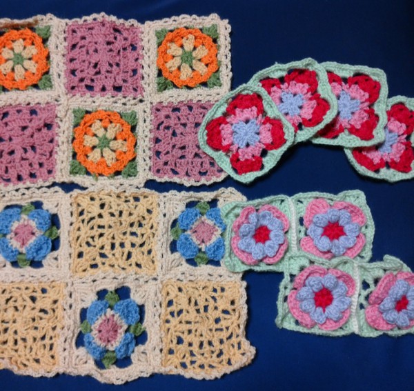 キーティキーティキーティさんの動画を見て作りました。パッチワークの様な編み地です。
