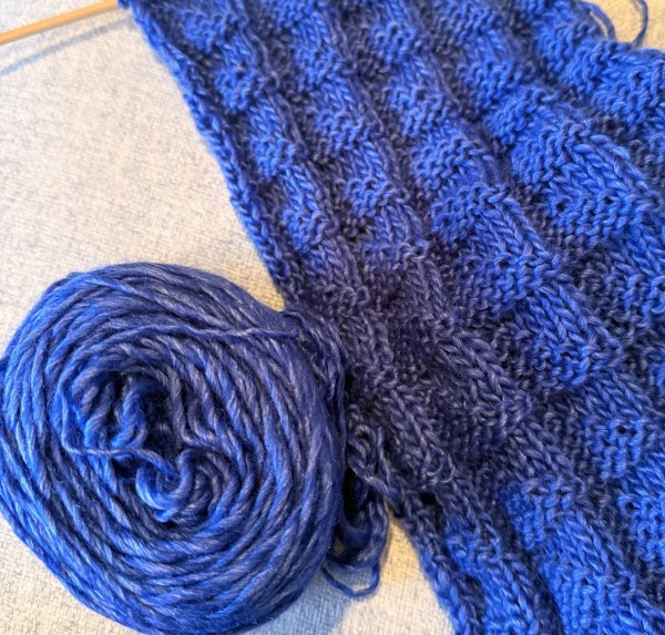 姪っ子の子供になんか編んであげようと買った毛糸ですが、なぜか自分のマフラーになりました。かぎ針で編みたかったのですがこの糸は目を拾えませんので棒針編みにしました。