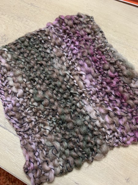 ソックヤーンとモヘヤ糸を引き揃えてスヌードを編みました。青い糸がなくなったのでクリーム系の糸を足しました。ふわっと軽くできたと思います。他の作品と平行して少しずつ編んでいたものです。