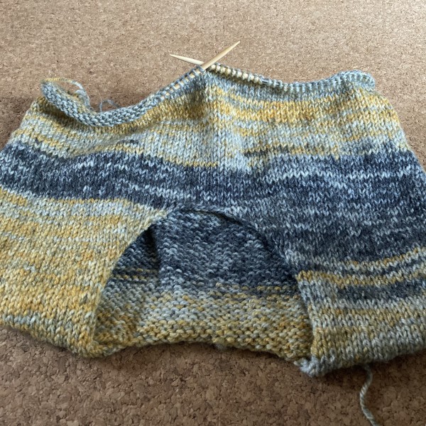 ベストを編んでます。ベストは棒針、棒針は大好きです。 かぎ針ができなくて、試行錯誤、とらの編みぐるみも作ってます。