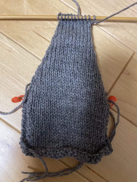 親指から編み進めるミトン 5本針のところ輪針で挑戦‼︎