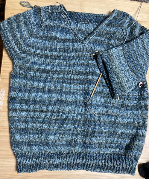 トップダウンのセーター。 ホルストガーンとopal毛糸の二本どり