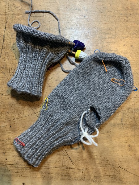 輪針を使ってはじめてのミトン。輪針もミトンも初。