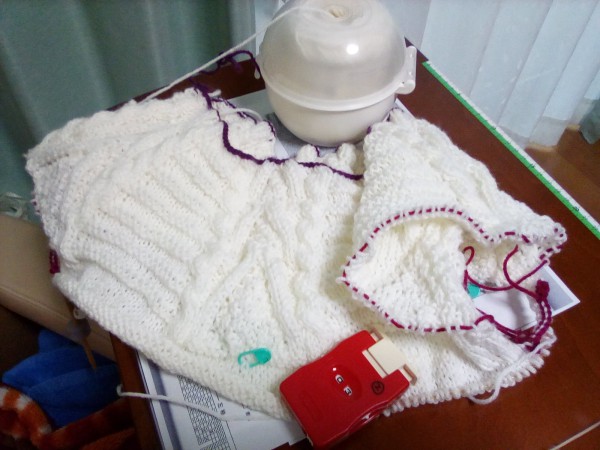 ノット編みの模様のマフラー 編み地に厚みがでて、あたたかい。 仕上がりが春になってしまい、今シーズンの出番は無いかな。