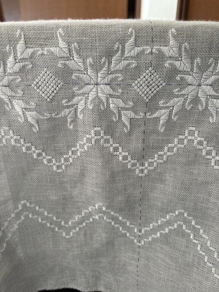 ハータンガー刺繍 ピアノカバー 織り糸を抜いてかがるハータンガー刺繍の美しさに興味を持ち、ピアノカバー作ったら綺麗じゃないかと思い製作中