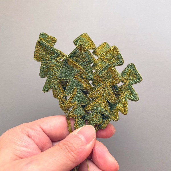 データを作ってミシン刺繍をし、ブローチに仕立てました。バックにつけると毎日着せ替え小物できます。
