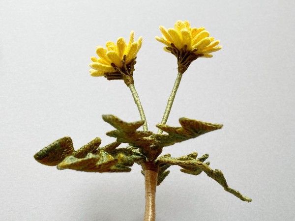 幡ヶ谷仮面展用のたんぽぽを組み立てたところ。 立体刺繍で作っています。