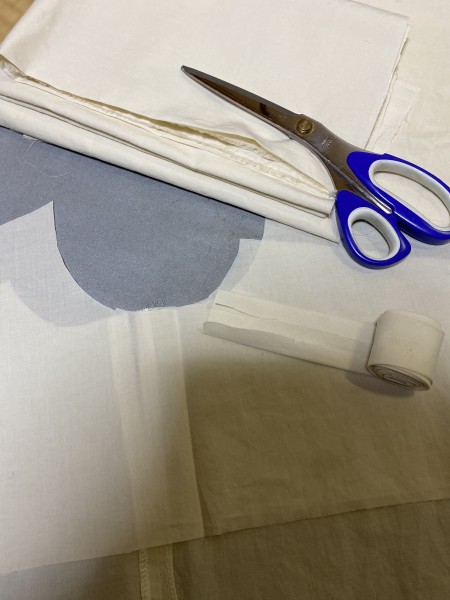 後ろリボンのブラウスです。 首の所で後ろに結ぶように仕上がる予定! オフホワイトのコットンローンで春らしいく。