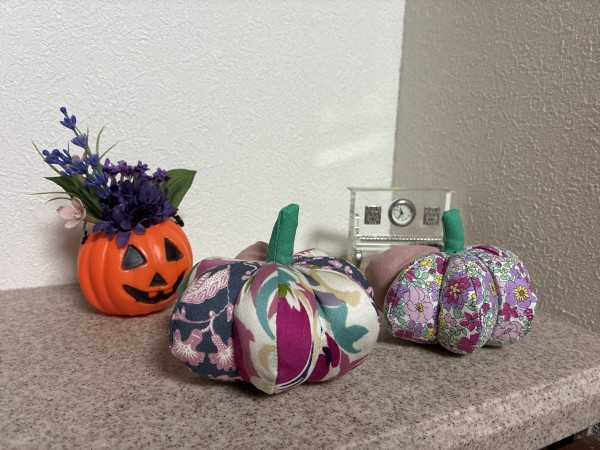 COTTON FRIEND 2022秋 よりパンプキンピンクッションをハギレで作成。 ハロウィン気分の飾りとして使って、時期を過ぎたら針山として使います。
